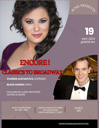 The America 250 Commemorative Concert is a powerful celebration of heritage, inclusivity, and song. Featuring an all female ensemble of acclaimed vocalists — Meredith Hansen (Metropolitan Opera), Madison Marie McIntosh (Florida Grand Opera), and Zhanna Alkhazova (Carnegie Hall, Sarasota Opera) — the program interweaves beloved arias by Puccini and Verdi with American songs that reflect immigrant journeys and underrepresented voices. Together, these works illuminate the richness of cultural exchange and the enduring resonance of diverse stories told through music. Curated by soprano Zhanna Alkhazova, Founder and Artistic Director of ACMS, the performance brings world-class artistry toan intimate setting while honoring West Hartford’s 250thanniversary. This one-of-a-kind program not only celebrates opera’s great traditions but also affirms the inclusive spirit at the heart of both our community and the nation’s founding ideals.